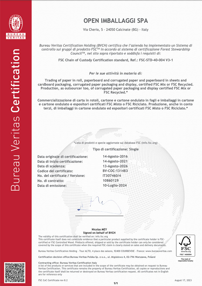 • Prodotti certificati FSC® disponibili su richiesta: il marchio FSC identifica i prodotti originati da legno proveniente da foreste gestite nel rispetto di standard ambientali, sociali ed economici.